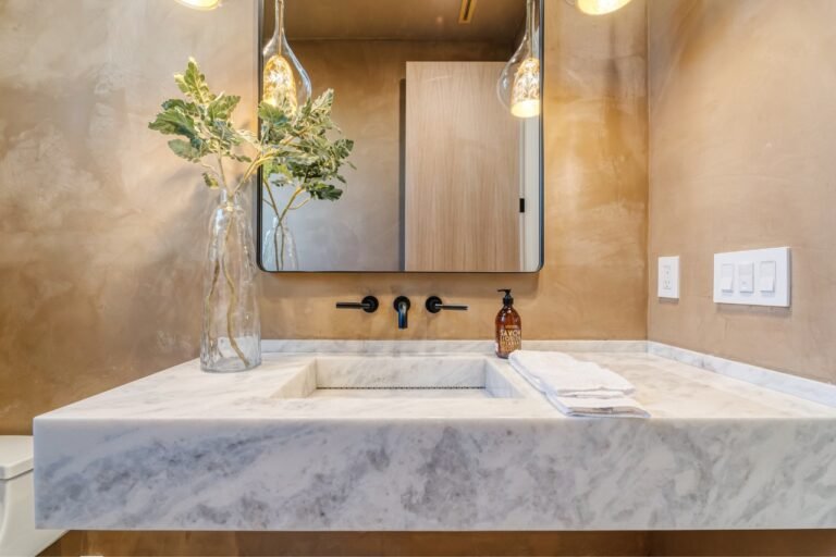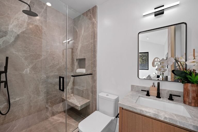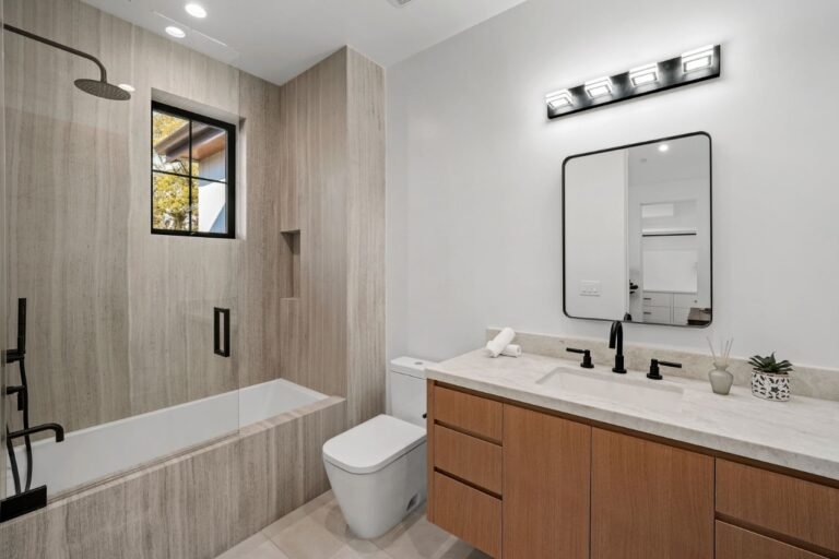 The scope covers layout planning, custom vanities, premium tile and stone finishes, plumbing fixtures, and coordinated execution from initial planning through final installation.